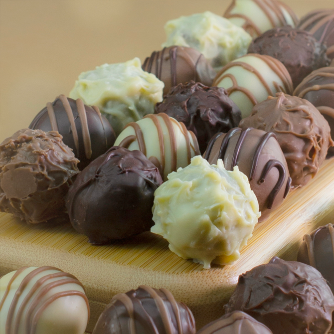 - Trufa Café de Chocolate Amargo, Leche y Blanco.